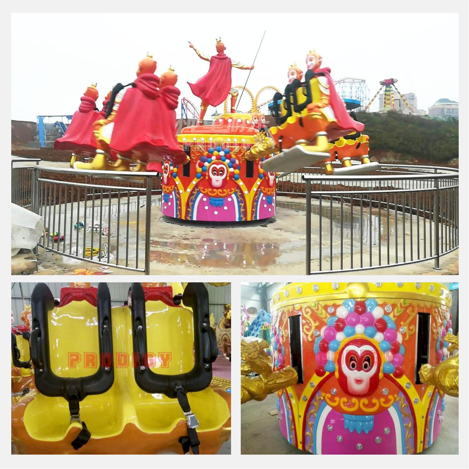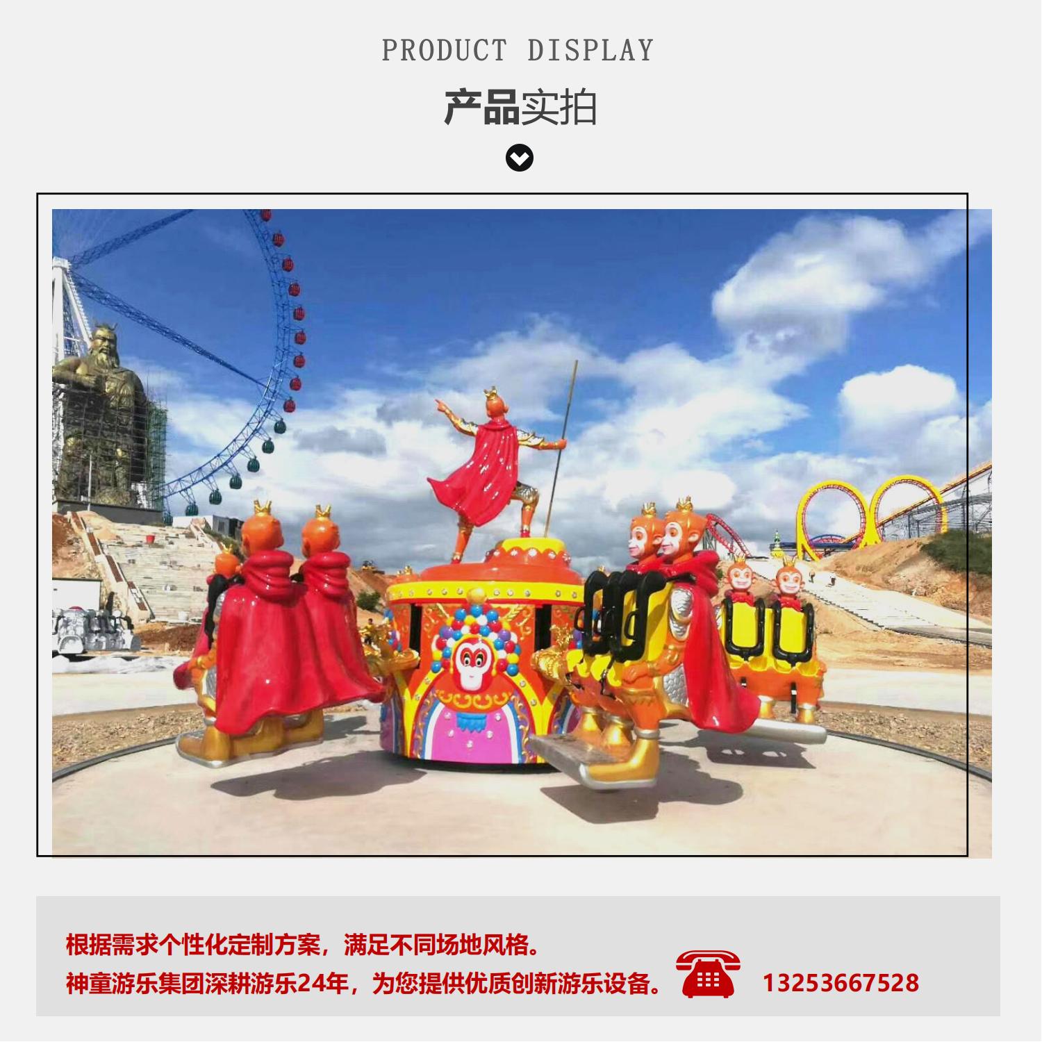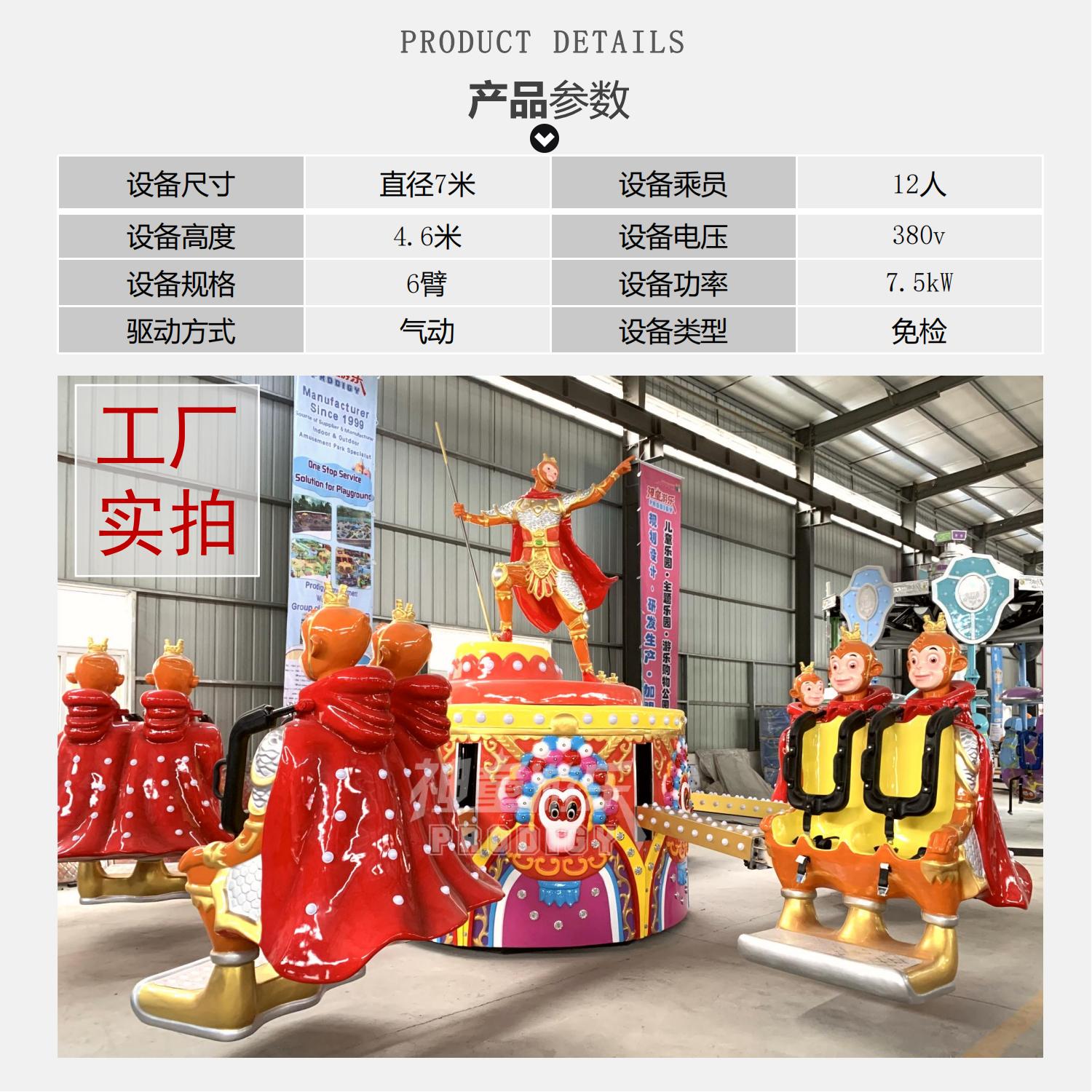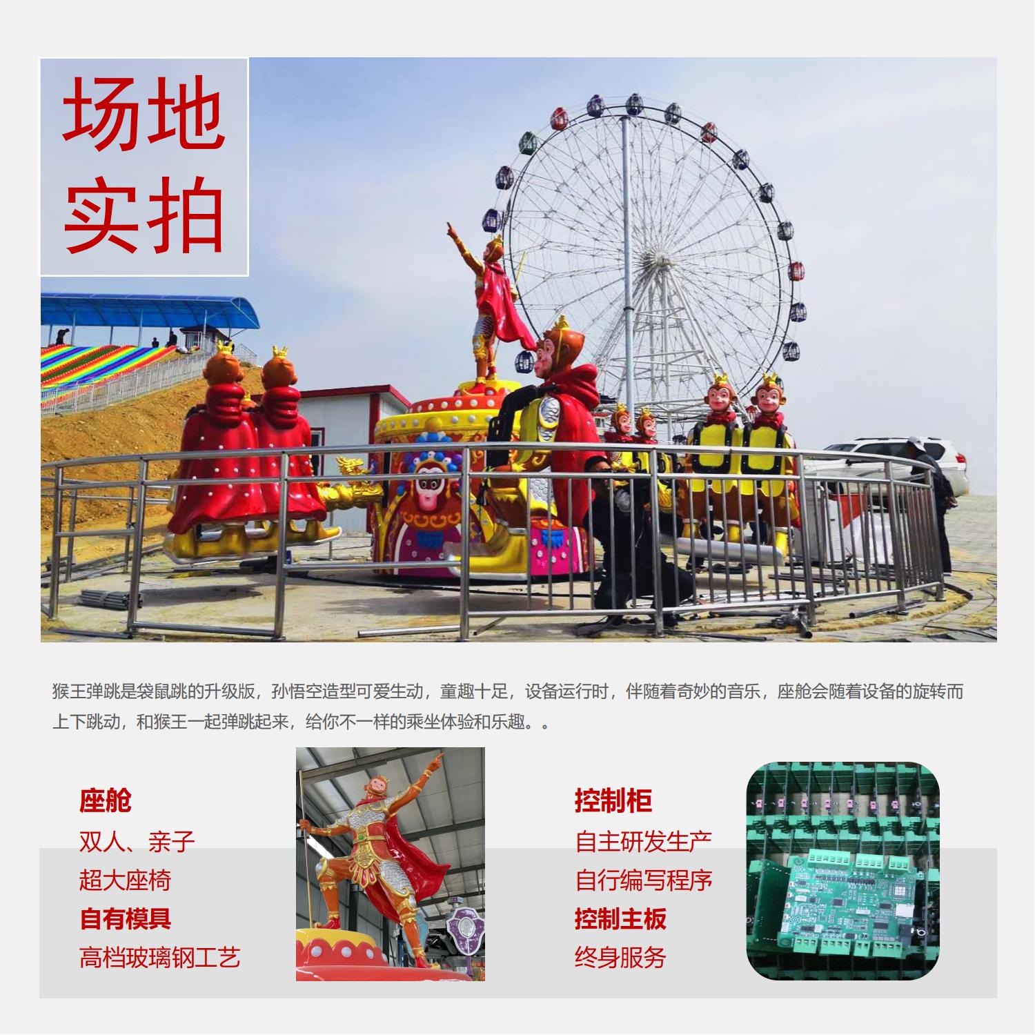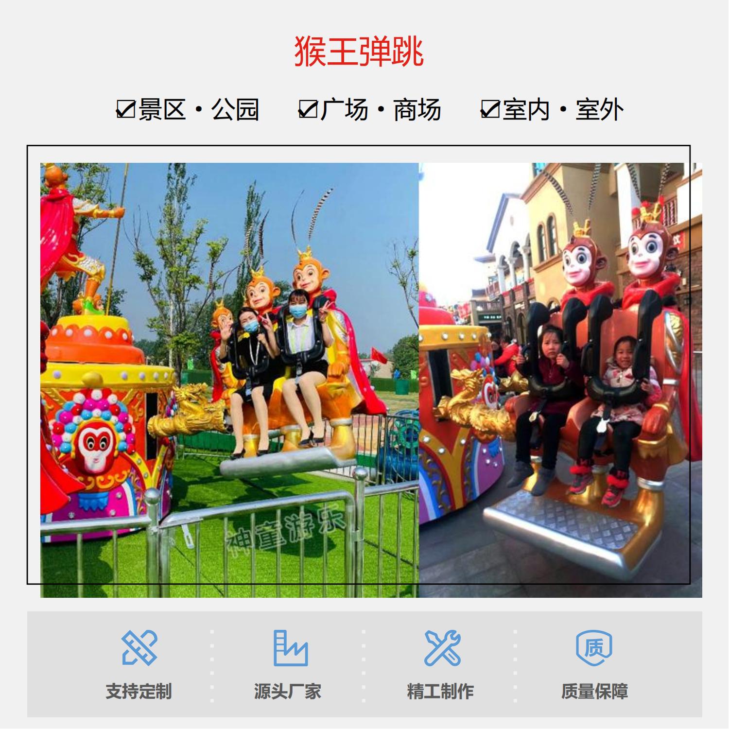 猴王彈跳是袋鼠跳的升級版,孫悟空造型可愛生動,童趣十足,設備運行時,伴隨著奇妙的音樂,座艙會隨著設備的旋轉而上下跳動,和猴王一起彈跳起來,給你不一樣的乘坐體驗和樂趣。